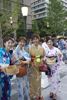 - ドキッ!OL浴衣だらけの丸の内打ち水!仲通り浴衣de打ち水