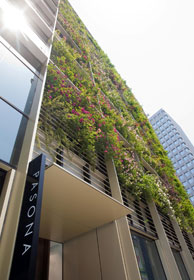 「エコなまちづくりというのは、"ストレスフリーな社会をつくる"ということなのではないでしょうか」と、当日の講演の感想から語り始めた南部氏は、まず、「このビルそのものがストレスフリーの環境である」と、「アーバンファーム」についての話題から講演をスタート。この日の会場ともなったパソナグループ本部は「アーバンファーム」と称し、自然との共生をコンセプトとした植物あふれるビル。オフィス内の天井や壁には80種類以上の果樹や野菜が育ち、ベランダや外壁では200種類以上の植物が季節ごとに咲き誇る、パソナグループの象徴的存在となっています。