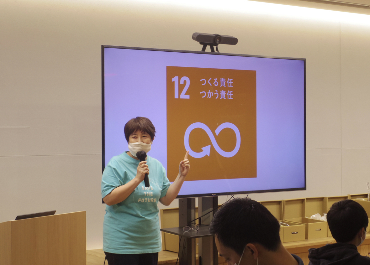 「SDGsは一言でいうと、『みんながハッピーになること』、『すべての国、すべての人々、及びすべての部分が満たされるよう、誰一人取り残さない』という考え方。今日17あるテーマのうち『つくる責任、つかう責任』をテーマに廃材アートを作っていただきます。今日はみなさん、一人ひとりが自分のやりかたで、自分らしく好きなように作品を作ってもらいたいです」