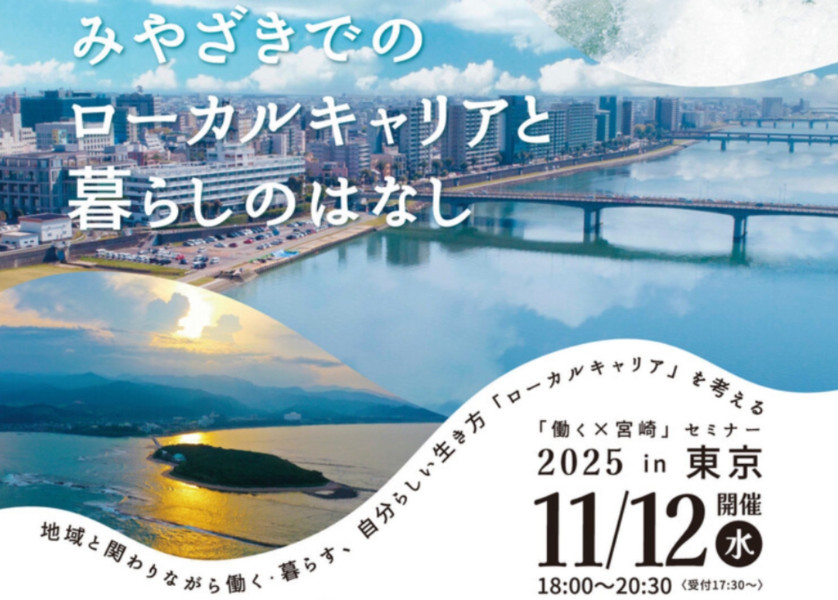 この度、地域と関わりながら働く・暮らす、自分らしい生き方「ローカルキャリア」について考える交流イベント『みやざきでのローカルキャリアとくらしのはなし in 東京』を開催いたします。