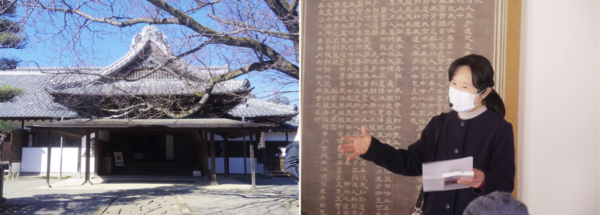 左:弘道館式台(玄関) 右:小圷氏。当時の情景が目に浮かぶような解説に受講者も興味津々