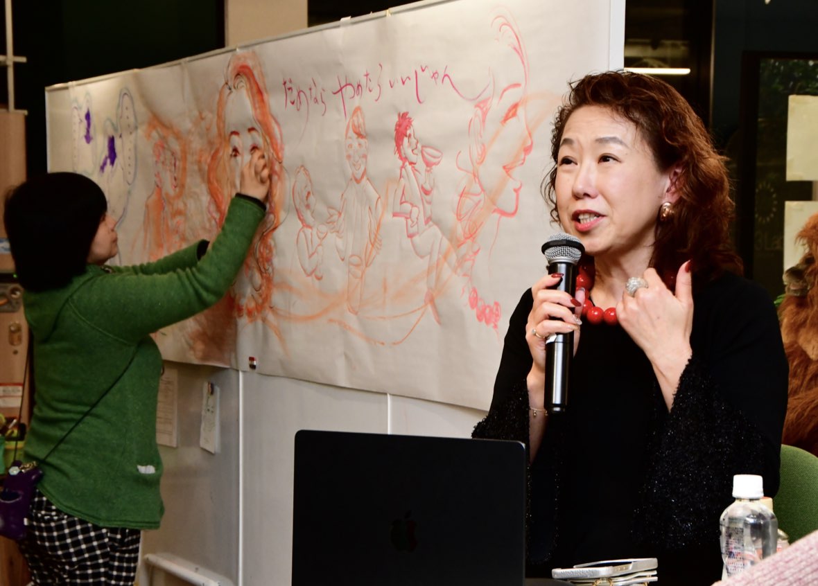 「紫乃ママ」の軽快な語り口に講演中も笑い声が起こり、会場はまるで本当の"スナック"のように楽しげな雰囲気が満ちた