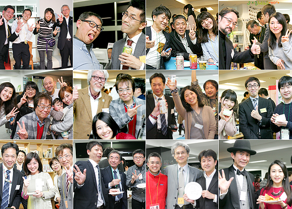 "フィナーレ"とはいえ、その実態はひとことで言えば"飲み会"。定刻を前から三々五々集まりはじめた参加者たちは乾杯を前に思い思いに飲み始めています。この日はTIP*S/3×3Labo共催のため、広いフロア全体が会場。最初は、広いスペースに参加者の姿が寂しげに散見されるのみでしたが、いつしか会場を埋め尽くすほどに膨れ上がり、乾杯が行われたのは詰めかけた参加者がほのかに酔い、ほどよく会場が温まってからでした。
