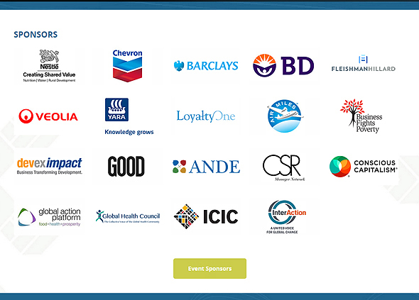 Shared Value Leadership Summit 2015のスポンサーもまた多様なセクションから集まった(Shared Value Initiativeのサイトより)