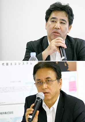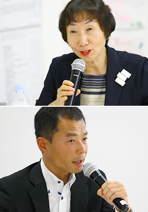 (上)内閣府・若井氏 (下)味の素・中尾氏若井氏は、経産省で地域経済の活性化事業に取り組んできた実績を買われ、地方創生事業に抜擢。「まち・ひと。しごと創生法」の主眼が「人口減少の歯止めと、東京圏への比人口の過剰な集中を是正する」ことにあり、「これまでの地方"再生"とは違う、新しい構造が必要。それが"創生"」であると説明。そして、そのためにはNPO、NGOはもちろん、企業の積極的な関与が必要だと話し、「地球規模でのアプローチも重要だが、国内の課題にもチャレンジしていただきたい」と訴えました。