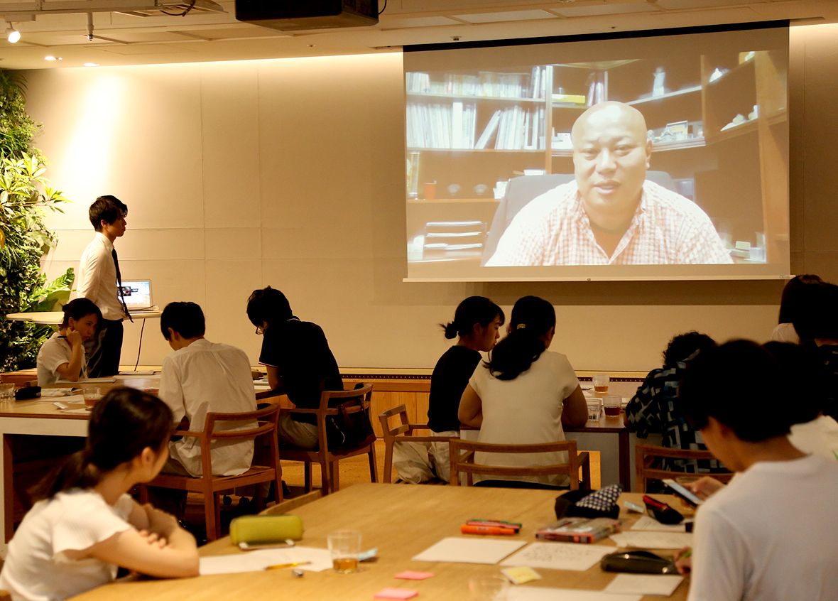 畳を敷き、照明も落としたいつもとは違うしんと静まり返った3×3Lab Futureのサロンスペースで、静かに座る学生たちの姿が印象的でした。