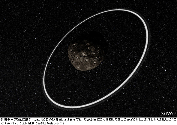 対称性を持ったこのわずかな減光は、いったいなにを意味するのか。素直な解釈は、小惑星が環を持っているとすることです。小惑星本体が星に被るその直前と、小惑星本体が星の前を通過し終わった直後に、環が少しだけ星からの光を遮ったと解釈するのです。土星はもちろん、木星、天王星、海王星にも環がある事は知られていましたが、スケールで言えば100倍くらい小さなカリクロにも環があるとすれば、その起源や維持する機構など、新たな謎が次々と浮かび上がってきます。すごい発見、ですよね?