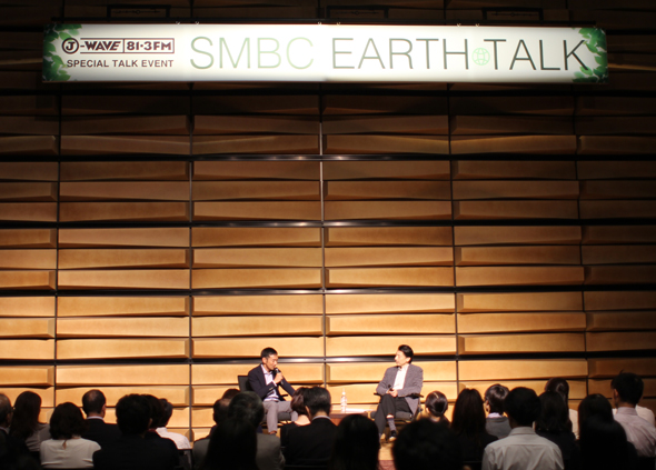 松村氏1階のアース・ガーデンは、「環境」「グローバル」「ダイバーシティ」をテーマに、触れる地球の展示のほか、島のように緑が配置されています。また、高い天井と音響効果を高めるテラコッタの壁面で、音楽イベントにも活用できます。現在はラジオ番組『J-WAVE SELECTION SMBC EARTH TALK』の公開収録のほか、定期的にロビーコンサートなどが行われているそう。12月にはミラノ万博の成果を受けて、「日本の食、未来の食」展も開催されました。